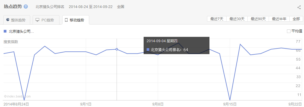 2014年9月16日關鍵詞“北京獵頭公司排名”百度指數分析